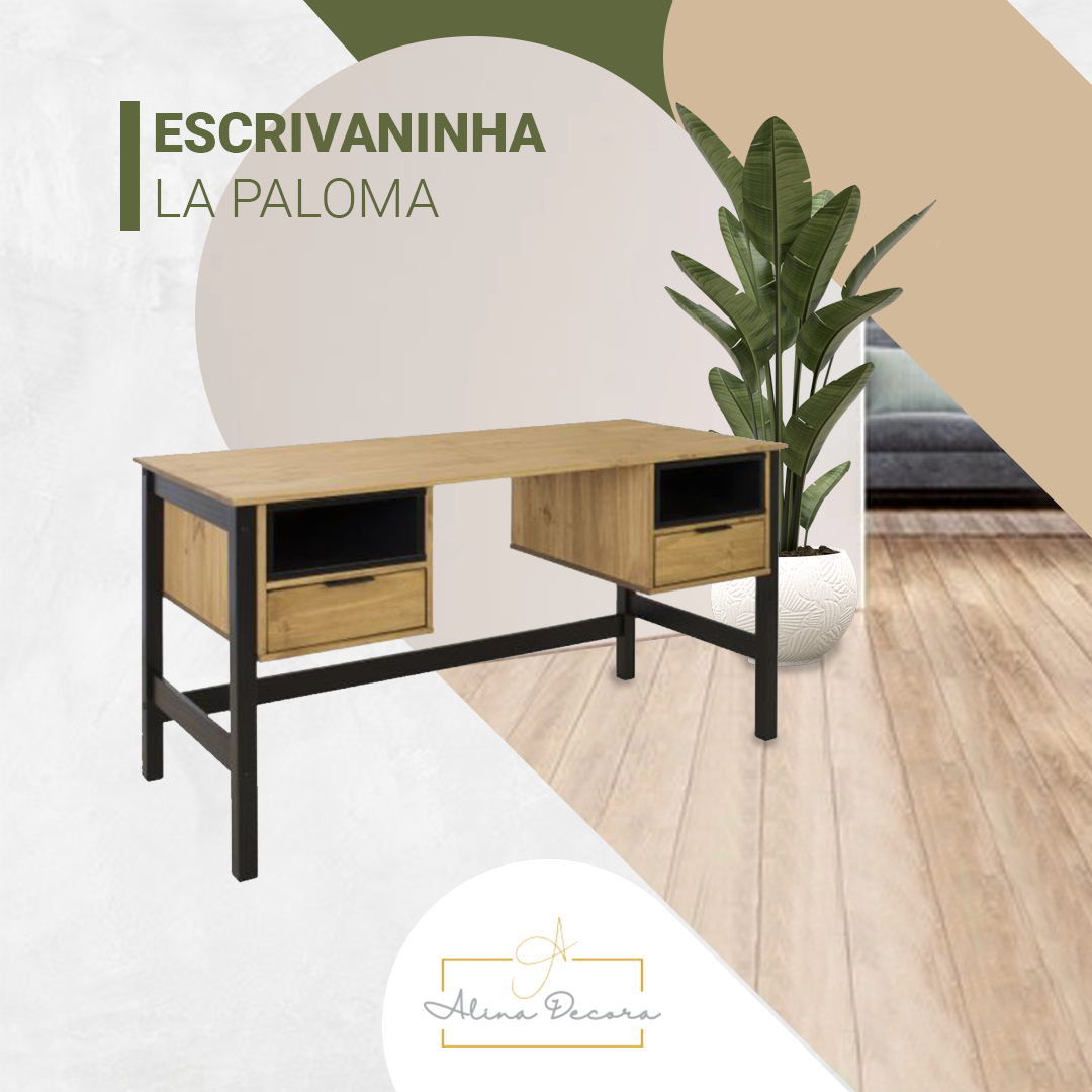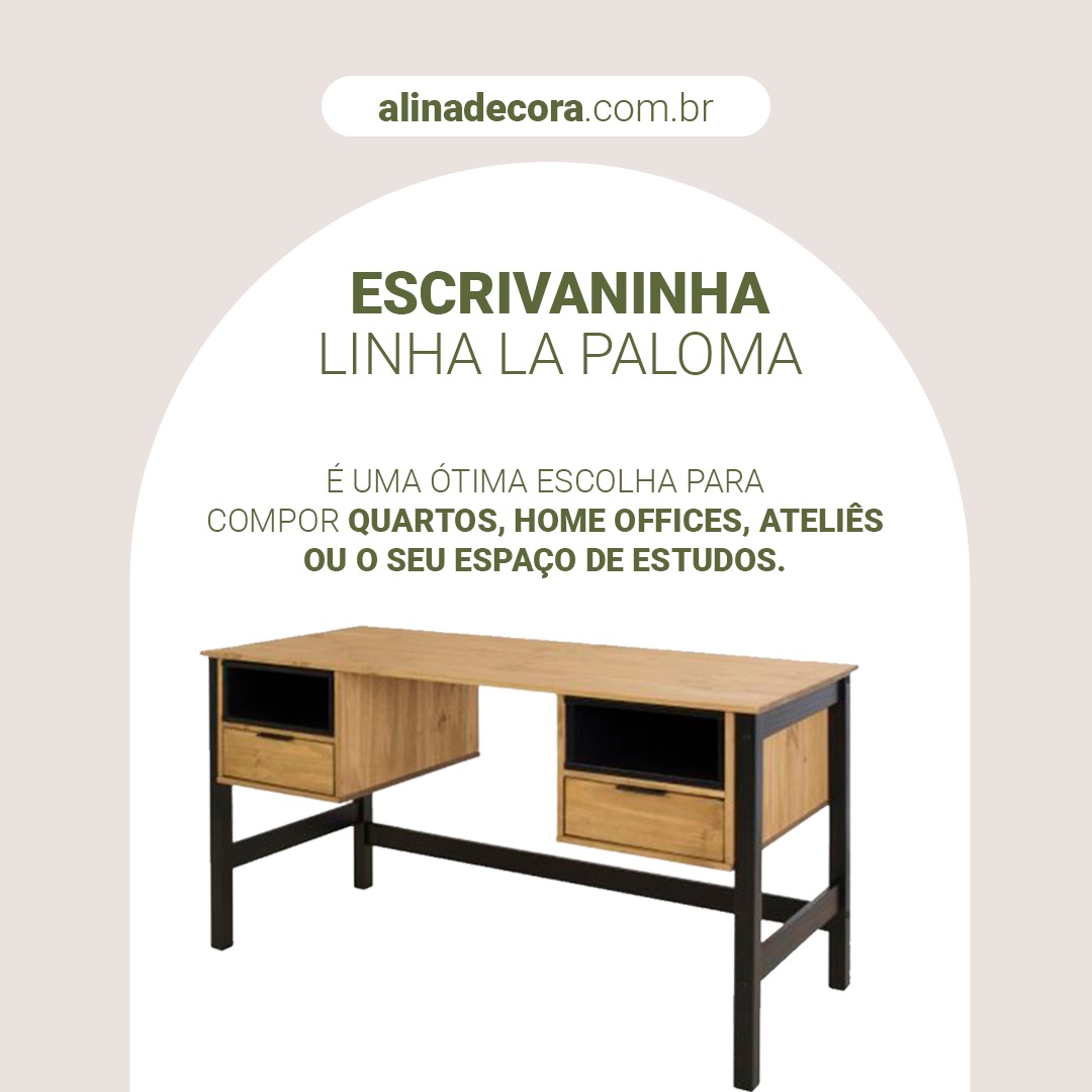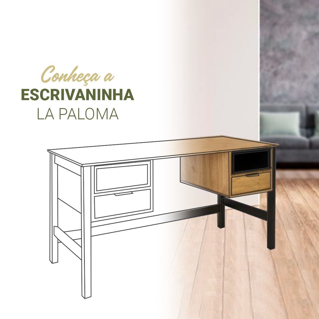 Com inspirações trazidas do nosso vizinho Uruguai, a linha La Paloma é destaque na decoração ao apresentar móveis práticos e funcionais que compõem diversos espaços da casa. Seus itens são confeccionados em madeira maciça de pinnus, e estão disponíveis nas cores: composição de preto e no acolhedor tom nozes; matéria-prima e acabamentos que conferem estilo e personalidade ao ambiente. Seu tampo permite acomodar notebook, luminária e o que mais você precisar. Já as suas gavetas são ideais para guardar pequenos objetos do dia a dia. Combine-a com uma cadeira de sua preferência e deixe seu ambiente ainda mais completo e funcional.
